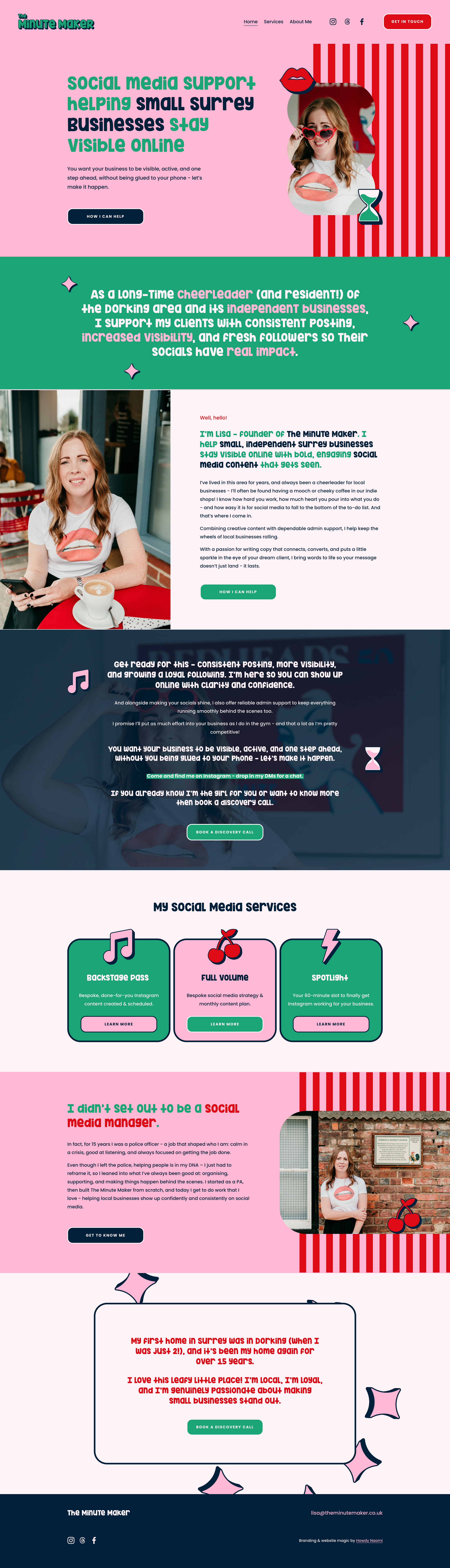 Lisa from The Minute Maker had been in business for almost 7 years when she reached out to me about rebranding her social media marketing agency. She loved the work she was doing with the small businesses of Dorking in Surrey, but felt very lacklustre about her own marketing. Her branding felt vague, confusing and not very ‘Lisa’, and this was putting her off from shouting about her business online.