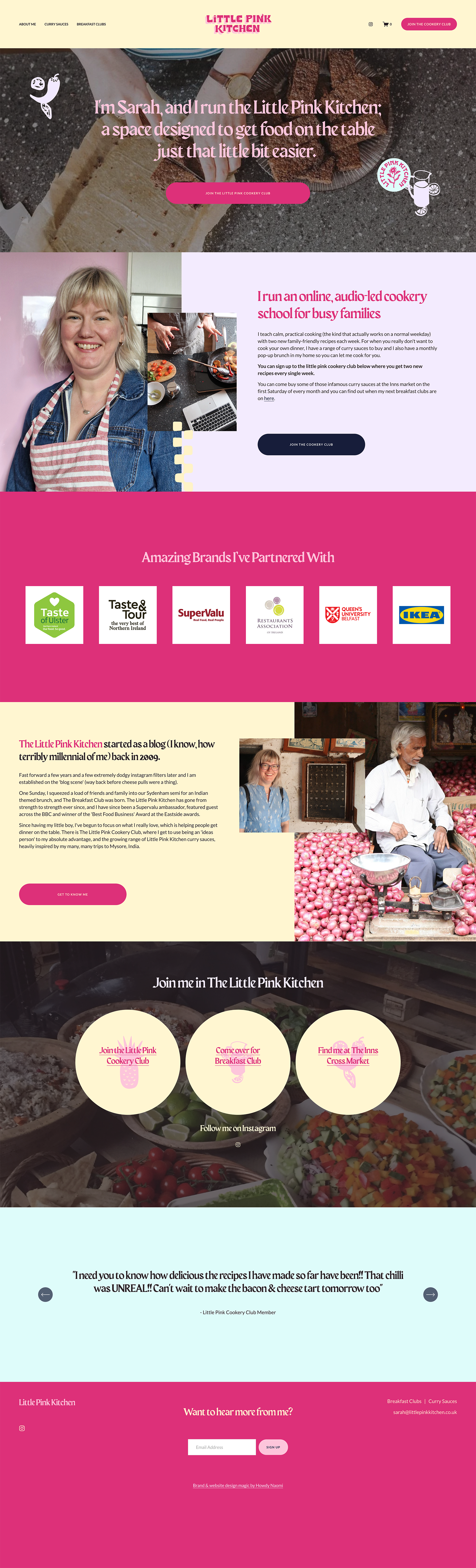 When Sarah, the one-woman power team behind The Little Pink Cookery Club, initially reached out on social media her brand was feeling tired, overstretched and not very ‘Sarah’. She was running a popular online cooking school, selling her viral curry sauces at Irish markets on the weekends and working as a brand partner for some huge brands like Ikea and The Restaurants Association of Ireland. And she was doing all of this with just a logo and a DIY-ed Wordpress website!