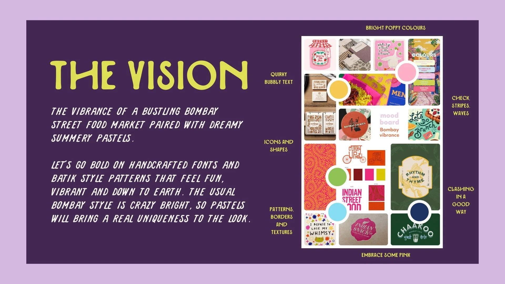 This moodboard captures the vibrant, street-food-inspired look Sarah was drawn to throughout the strategy phase